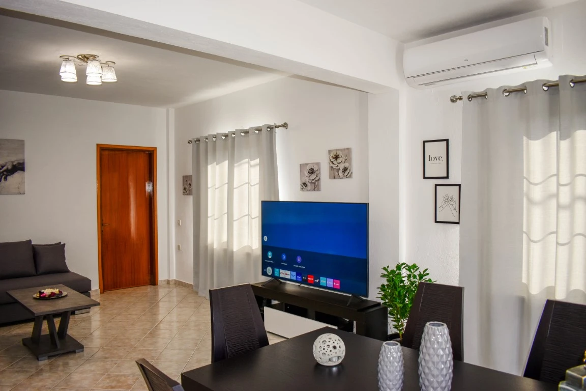 Athos Apartment is designed to provide a relaxed and comfortable stay for families and groups. With two bedrooms, additional sleeping options in the living room, a fully equipped kitchen, air conditioning, and essential amenities, it offers all the conveniences you need for an enjoyable stay in Skiathos Town.